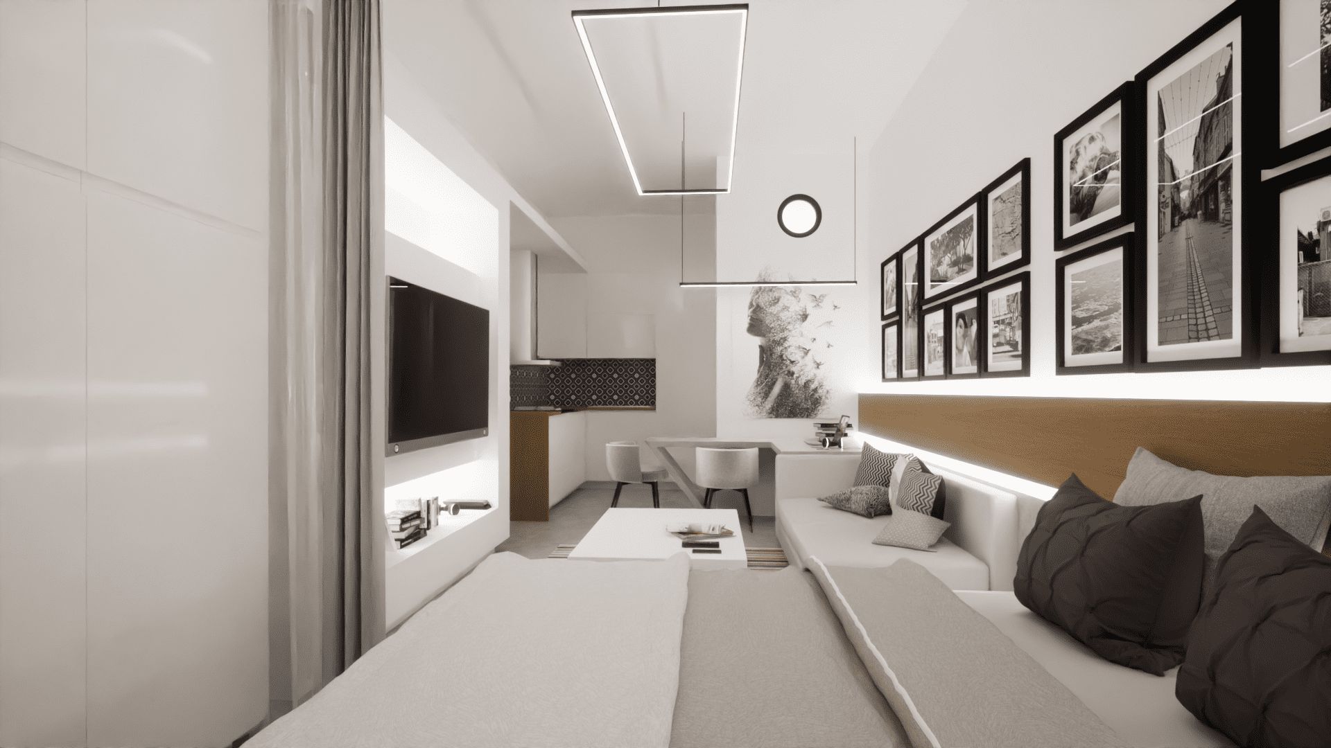 Με την πρότασή μας καταφέραμε να προσφέρουμε στους ιδιοκτήτες διαμερίσματα με ενιαίο και ευρύχωρο χώρο καθιστικού και κουζίνας , μια κρεβατοκάμαρα, 1 λουτρό και μεγάλες ευρύχωρες ντουλάπες.