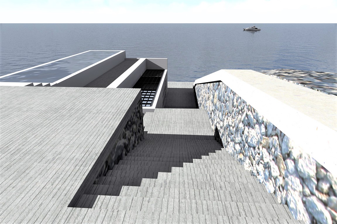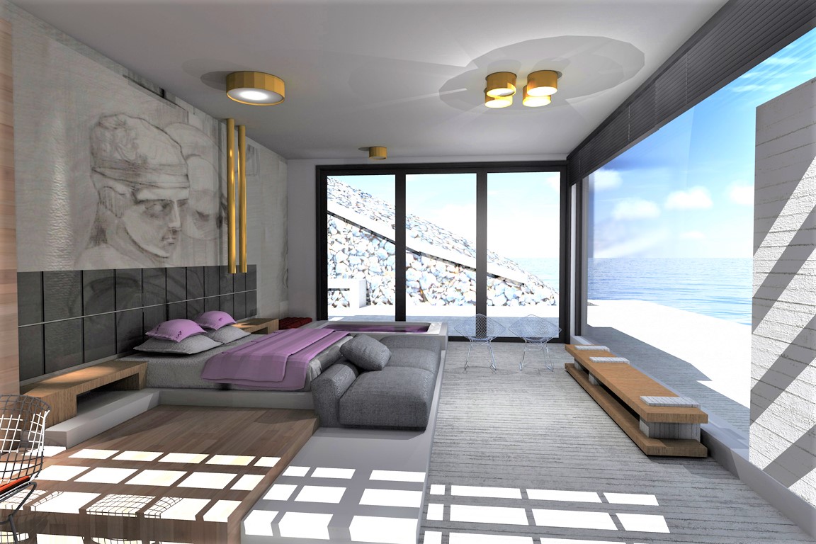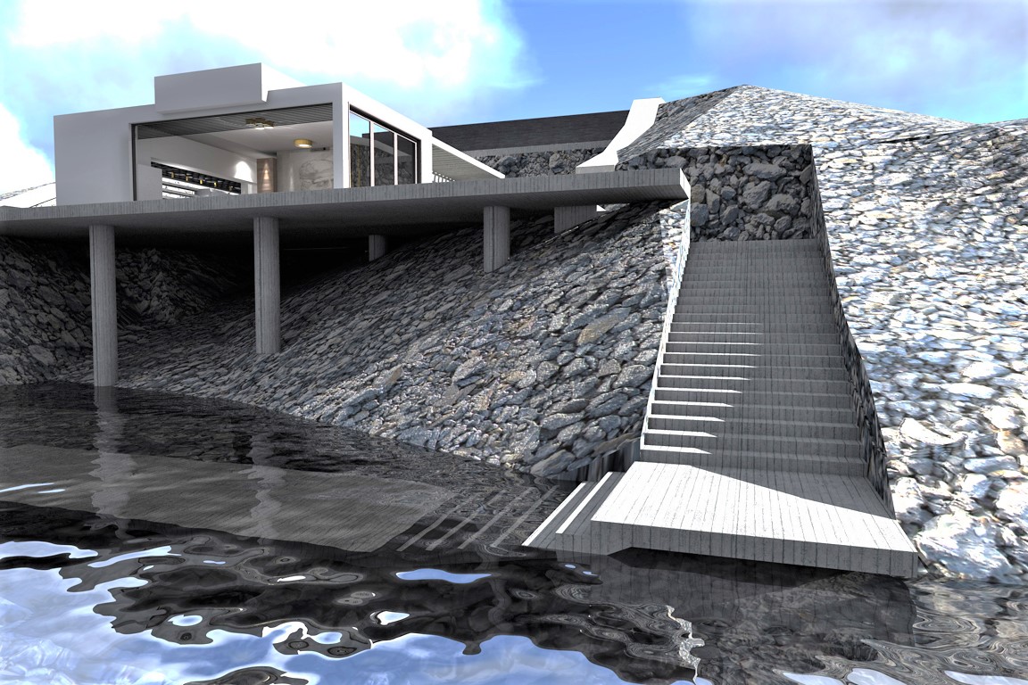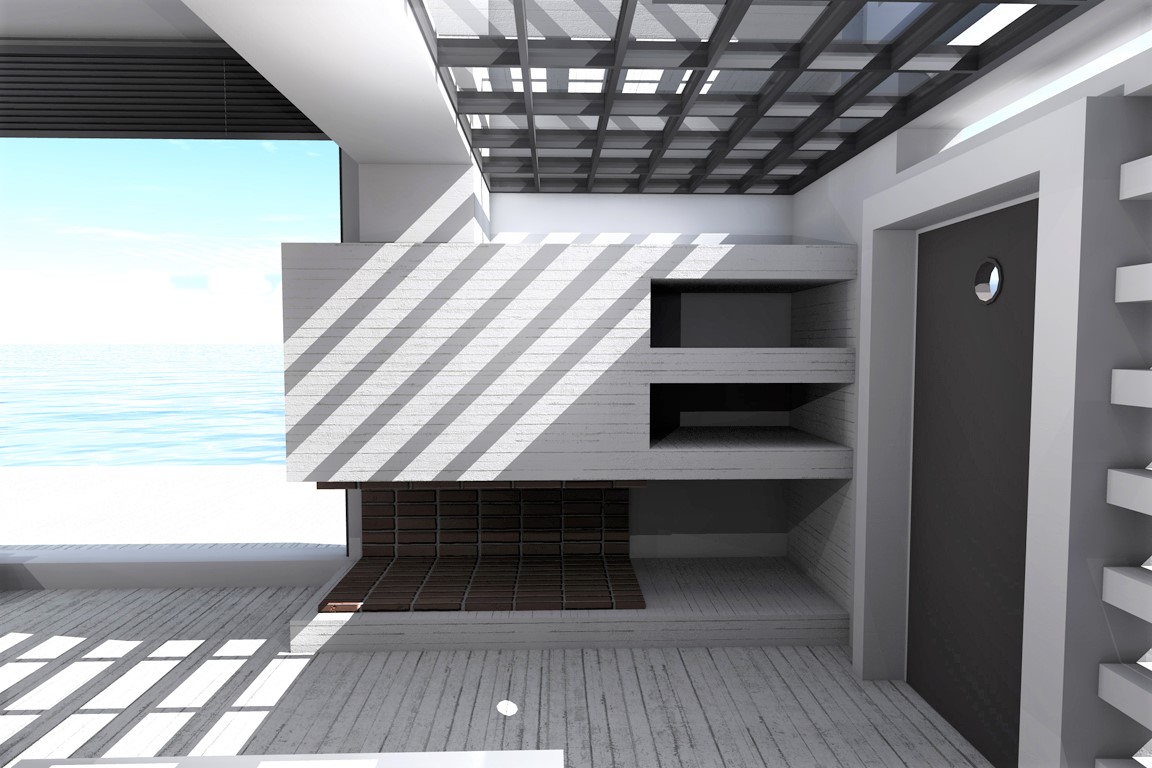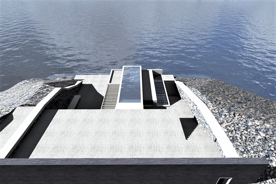 Κληθήκαμε σε λίγα μόλις τετραγωνικά να σχεδιάσουμε μία μοντέρνα εξοχική κατοικία τύπου studio όπου οι ιδιοκτήτες θα μπορούν να απολαμβάνουν την ομορφιά της θάλασσας λόγω της προνομιακής θέσης του οικοπέδου. Εξωτερικά εναρμονίζεται το κτίσμα με τον βραχώδη περιβάλλοντα χώρο ενώ στην οροφή του σχεδιάστηκε η πισίνα η οποία δίνει την αίσθηση της ένωσης με τη θάλασσα. Εσωτερικά η διακόσμηση είναι στυλ modern luxury ενώ υπάρχει και δεύτερος χώρος με δύο παιδικά κρεβάτια κουκέτες.
