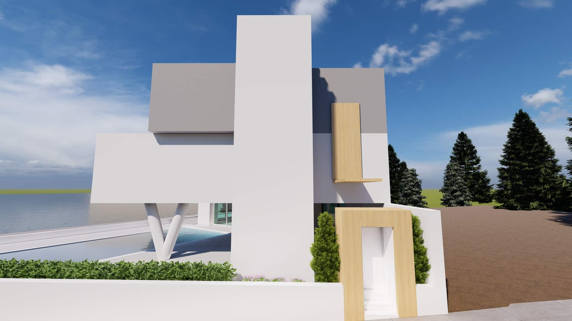 Στόχος του σχεδιασμού ήταν ο ιδιοκτήτης οικοπέδου 500τμ μπροστά στη θάλασσα με ανεμπόδιστη θέα, να έχει εικόνα πώς μπορεί να αποκτήσει σε αυτόν τον χώρο μία κατοικία ξεχωριστή , μοντέρνα και εντυπωσιακή όπως επιθυμούσε.